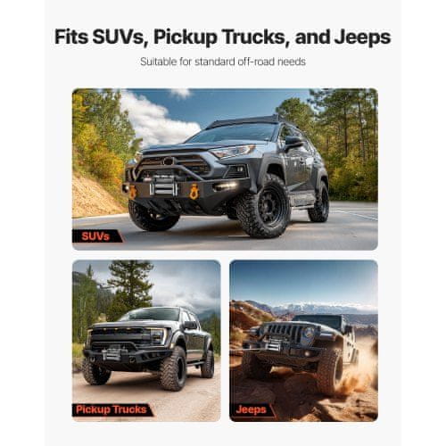 Ta električni vitel je zasnovan za zagotavljanje močne in zanesljive vlečne sile za reševanje SUV-jev tovornjakov prikolic čolnov in terenskih vozil iz zahtevnih situacij kot so blato ali pesek. Opremljen je z robustnim jeklenim vrvjo in visokozmogljivim motorjem ki zagotavlja učinkovito in varno vleko v različnih okoljih. Njegova trpežna konstrukcija in vsestranske možnosti daljinskega upravljanja ga naredijo primernega tako za profesionalno kot rekreativno uporabo.