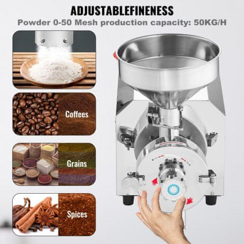 • Nastavljiva finost: 0–50 mesh