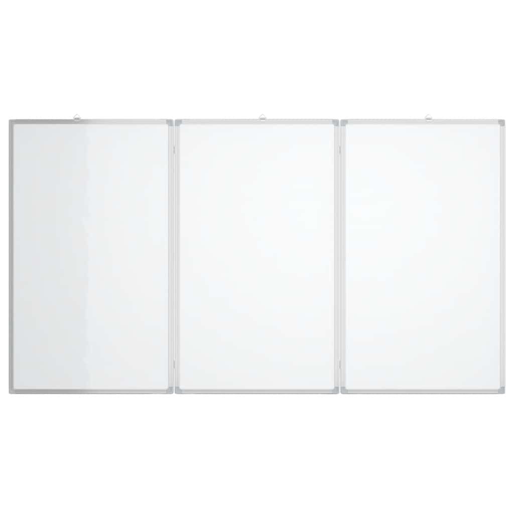 Zložljiva magnetna tabla je odličen način za ustvarjanje prostora v vašem domu ali pisarni za zapisovanje zapiskov, risanje in obešanje fotografij. Gladka površina: Magnetna tabla ima gladko, lakirano površino, na katero je enostavno pisati in jo je enostavno čistiti. Poleg tega lahko nanjo z magneti obesite zapiske, fotografije in druge predmete. Enostavna montaža: Magnetna tabla ima tri nastavljive kljuke, ki jih lahko prilagodite svojim potrebam, kar vam omogoča, da jo hitro namestite na katero koli steno na izbrani lokaciji. Zložljiva: Magnetna tabla ima dve tečajni plošči, ki zagotavljata več prostora za pisanje, in jo je mogoče nagibati in zlagati glede na vaše potrebe. Varna: Magnetna površina je uokvirjena v trden aluminijast okvir in ima na hrbtni strani kovinsko ploščo, vogali pa so zaščiteni s štirimi ščitniki za vogale, kar zagotavlja varnost uporabnika. Vsestranska uporaba: Magnetna tabla je vsestransko orodje za pripravo predstavitev in beleženje zapiskov. Dobro se obnese v šolah, konferenčnih sobah, pisarnah in domovih.