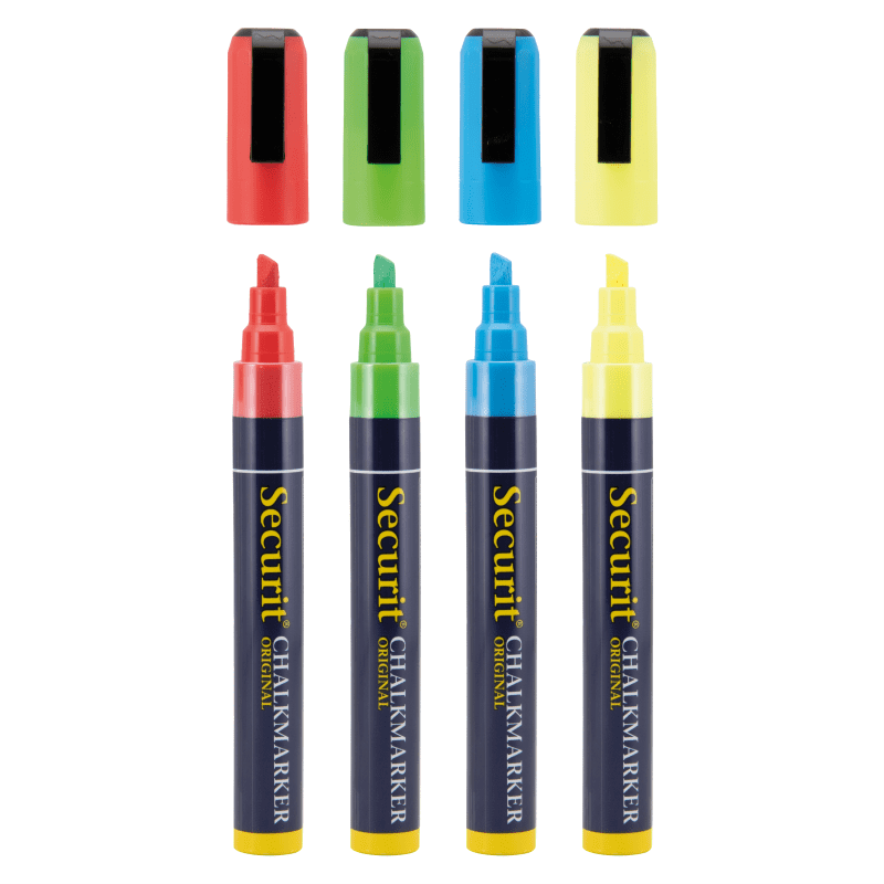 Securit by Vermes MARKERJI s tekočo kredo MEDIUM v štirih NEON barvah SMA510V4