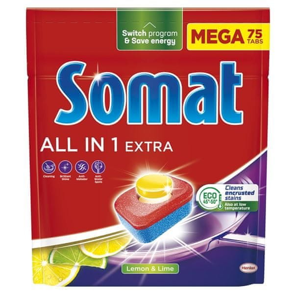 • Somat All-in-1 Extra tablete za pomivalni stroj za bleščeče čisto posodo tudi pri kratkih in eko programih z nizko temperaturo!