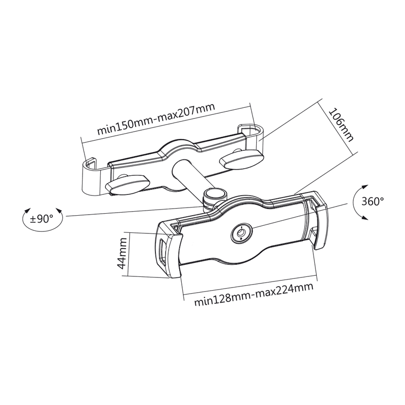 Nosilec za tablični računalnik za avtomobilski naslon za glavo za velikosti od 4.7″ do 12.9″. Celoten opis