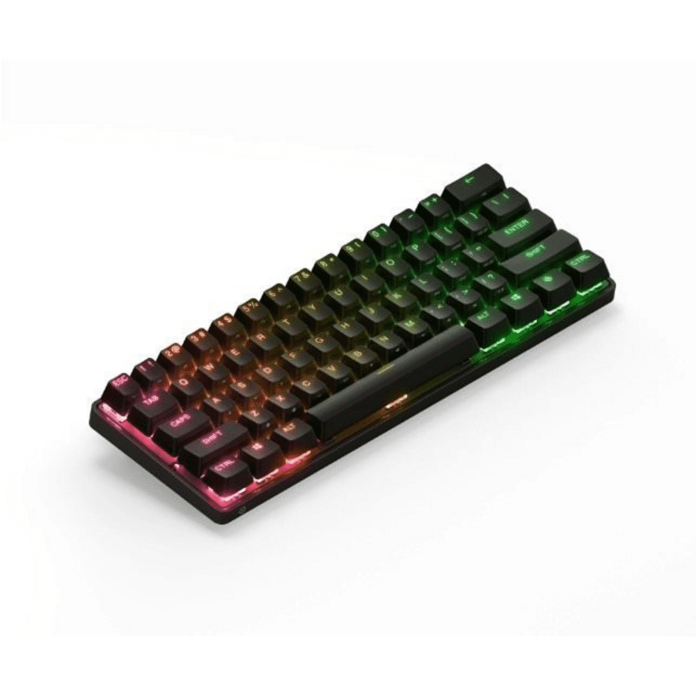 Na sliki je tipkovnica v kompaktnem 60 % formatu z 61 tipkami. Zaradi manjših dimenzij ponuja več prostora za premikanje miške med igranjem.