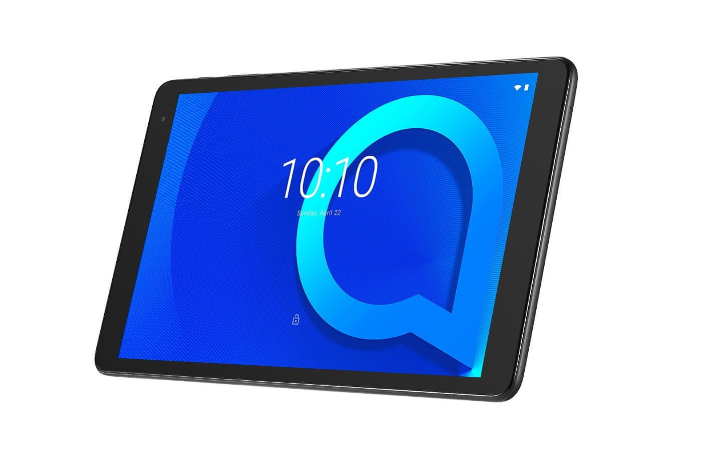 Alcatel 1T 10 tablica z elegantno obliko in s 25,65 cm (10,1") zaslonom, z ločljivostjo 1280 × 800 ponuja vrhunske tehnične lastnosti in kar najboljšo zabavo pri gledanju vaših najljubših filmov in igranju iger. Z Wi-Fi povezavo in funkcijo Bluetooth 4.2, bo odličen spremljevalec brskanja po internetnih straneh in za uporabo družabnih omrežij.