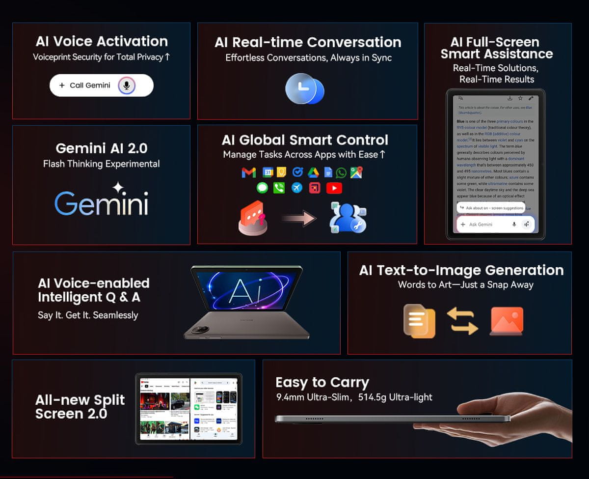 Najpametnejši tablični računalnik z AI umetno inteligenco, tehnologijo Gemini 2.0 in medaplikacijsko inteligenco!