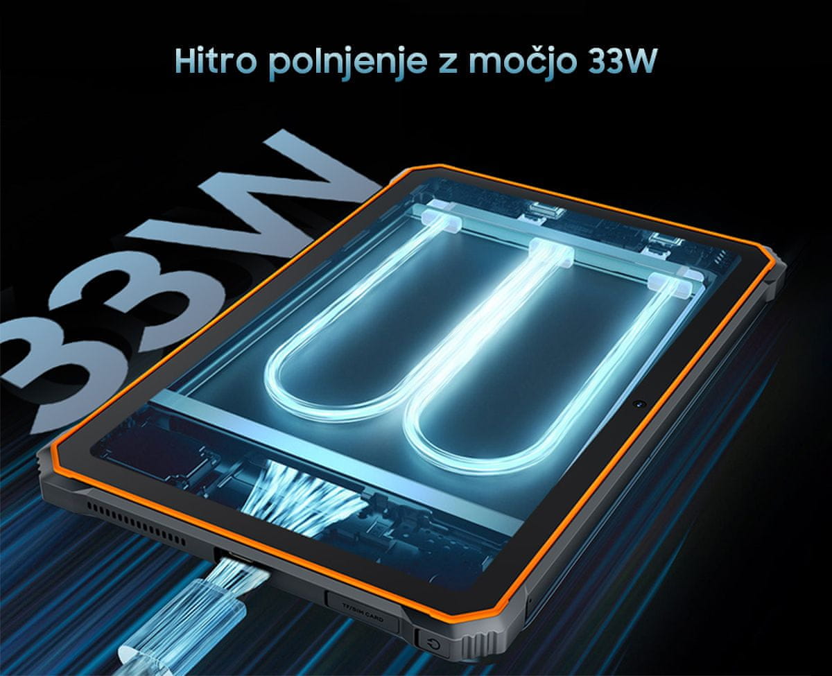 Tab Active 8 Pro vam s pomočjo 22000mAh baterije omogoča, da jo uporabljate več dni skupaj, opravljate video klice, poslušate glasbo, igrate igre ali brskate po spletu. Tablica podpira tudi najnovejše 33W hitro polnjenje!