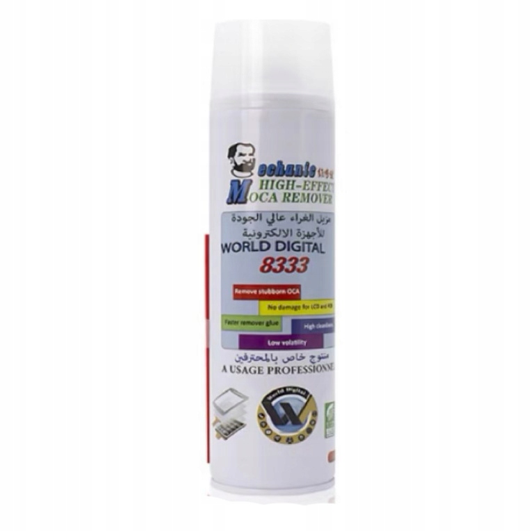 Mechanic 8333 – OCA/LOCA sprej za odstranjevanje lepila 550 ml | Za LCD in OLED | GSM popravilo | Visoka čistost