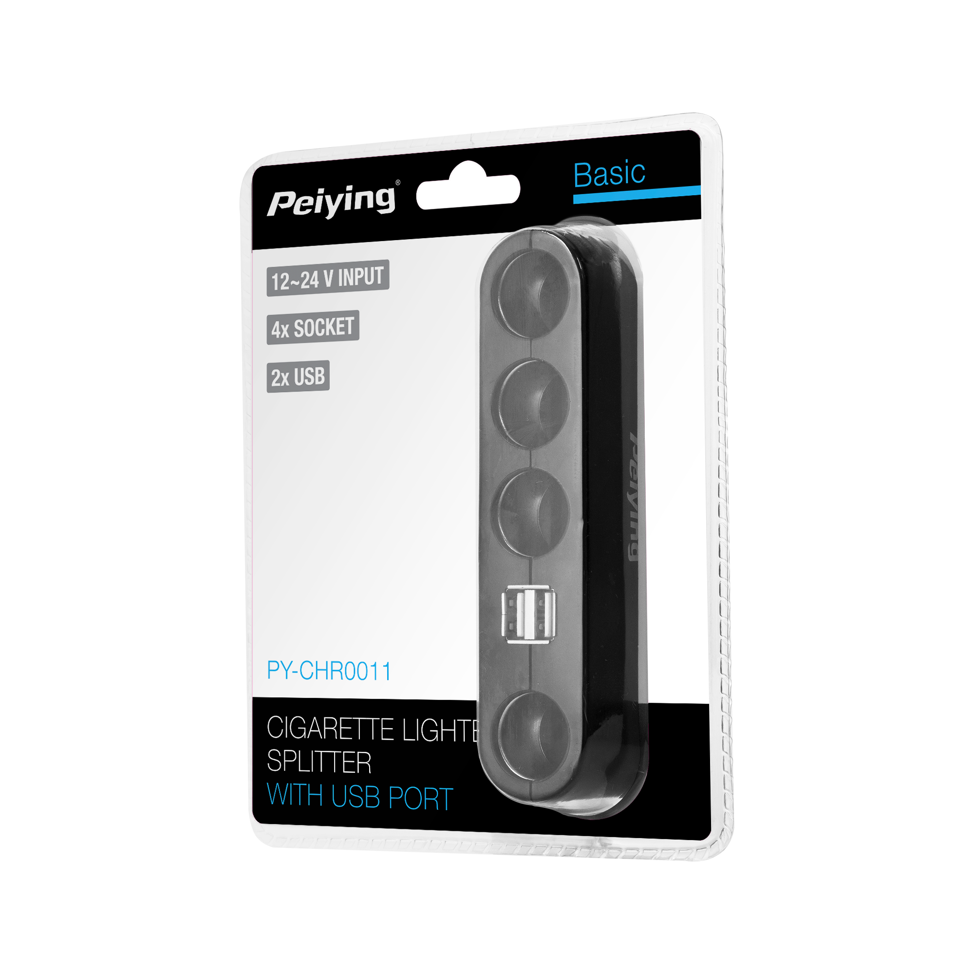 Razdelilnik ponuja štiri vtičnice za cigaretni vžigalnik, kar vam omogoča hkratno napajanje različnih naprav, kot so GPS navigacijska naprava, video snemalnik ali polnilec za telefon. Dodaten USB vhod z izhodno napetostjo 5V in tokom 2A zagotavlja hitro polnjenje mobilnih naprav.
