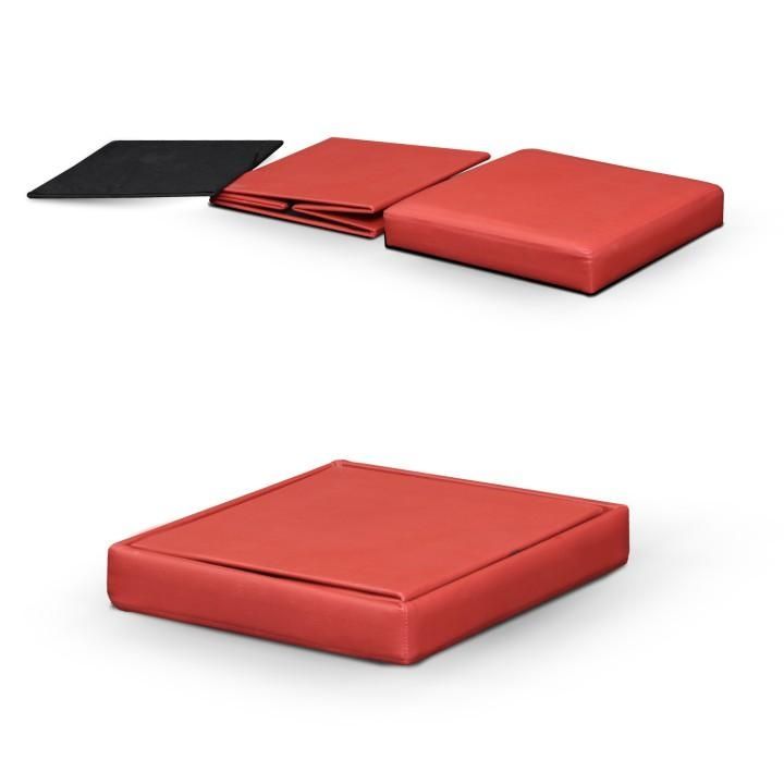 Tabure TELA je pameten pomočnik, ki vam bo zagotovo všeč. Po potrebi ga lahko preprosto razgrnete ali zložite na stolček s prostorom za shranjevanje. Zložena ima obliko kocke in meri le nekaj centimetrov. Gre za majhno škatlo, ki jo preprosto potisnete pod posteljo, postavite na polico ali preprosto postavite na prosto mesto. Tabure je priročno uporabiti za sedenje kot dodatno mesto za nepričakovan obisk. Za oblazinjenje je bilo uporabljeno trendovsko rdeče eko usnje. Če vam barva ne ustreza, lahko izbirate tudi med drugimi barvnimi različicami eko usnja. Višina sedeža je 37 cm, globina sedeža pa 40 cm. Nosilnost stolčka je 200 kg.