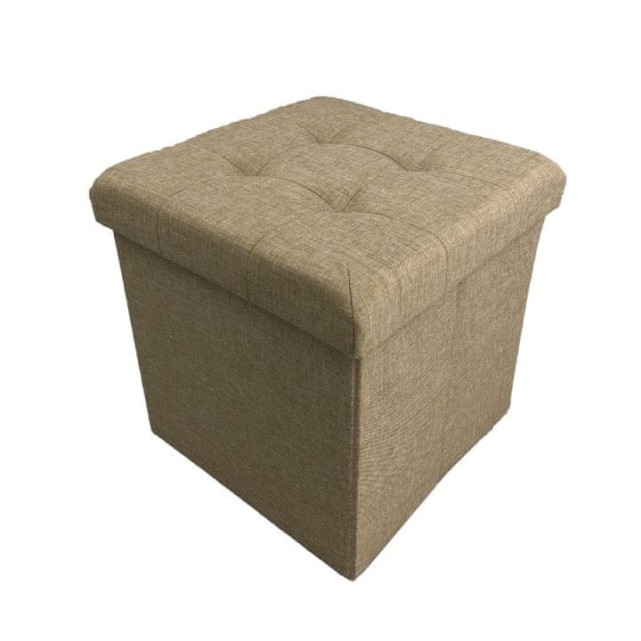 Če iščete udoben in eleganten dodatek k notranjosti, je tabure prava izbira! Tabure FALON s prostorom za shranjevanje vam bo z veseljem pokazal, za kaj je bil ustvarjen. Z veseljem vam ne bo služil le kot mizica, odlagalni prostor ali stolček za vaše utrujene noge. Uporabite ga lahko tudi kot okras ali v primeru velikega obiska. Višina sedeža je 38 cm, globina sedeža 37,5 cm. S fino šivano bež tkanino se odlično prilega vsakemu interierju, z merami (ŠxGxV): 37,5×37,5×38 cm pa bo postal vaš tih in zvest spremljevalec.