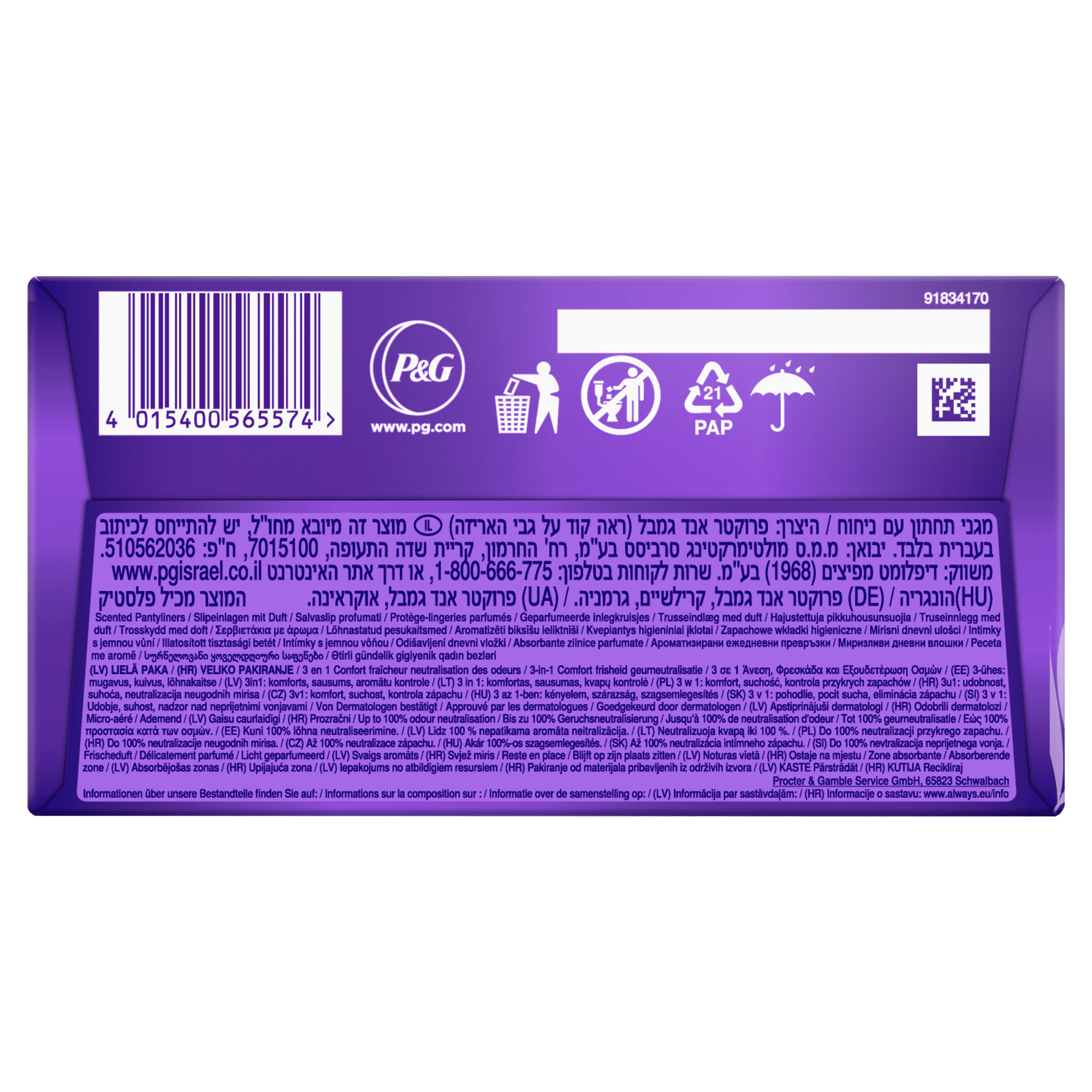 Ostanite sveži ves dan z dnevnimi vložki Always Dailies Normal Fresh & Protect. Oblikovani so tako, da zagotavljajo izvrstno kombinacijo udobja in zaščite, zato se nanje lahko zanesete prav vsak dan, ne da bi vas skrbelo, da jih boste čutili. Idealni so za vaginalni izcedek, kot dodatna zaščita pri neredni menstruaciji in za dneve šibke menstruacije.