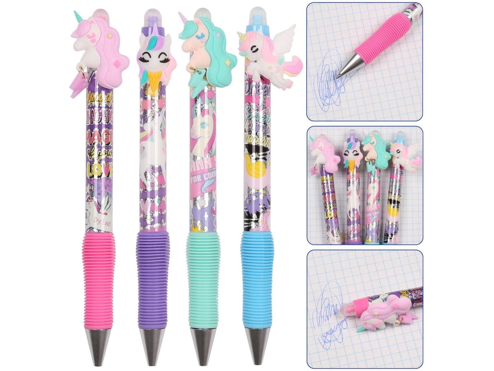 Barvito izbrisljivo pisalo z motivom enoroga, praktično in čudovito šolsko orodje.