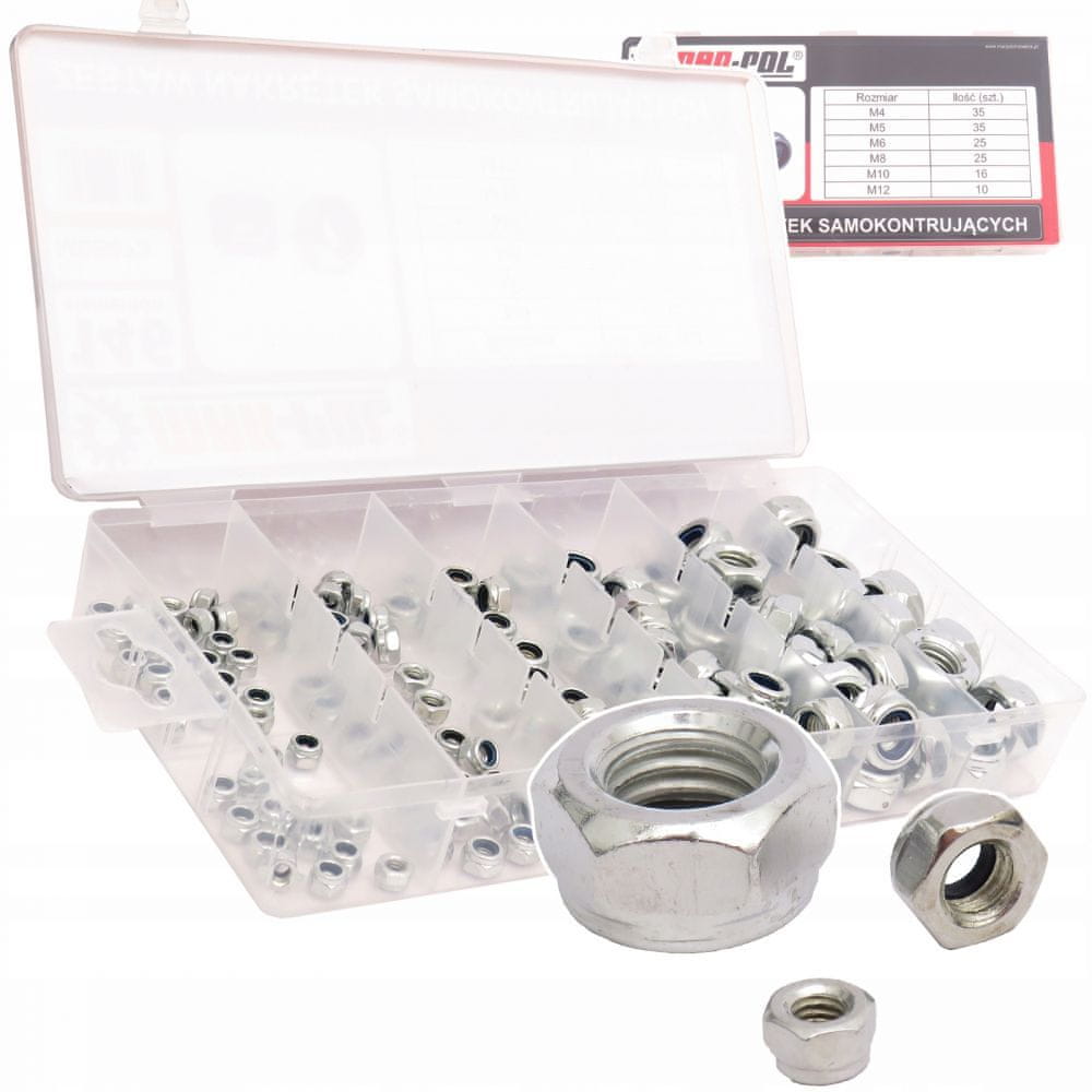 Komplet 146 samovarovalnih matic z najlonskim vložkom je izdelan iz visokokakovostnega materiala. Različne velikosti v kompletu zagotavljajo, da boste našli velikost, ki jo potrebujete. Set je primeren ne samo za profesionalne delavnice, ampak tudi za domačo uporabo.