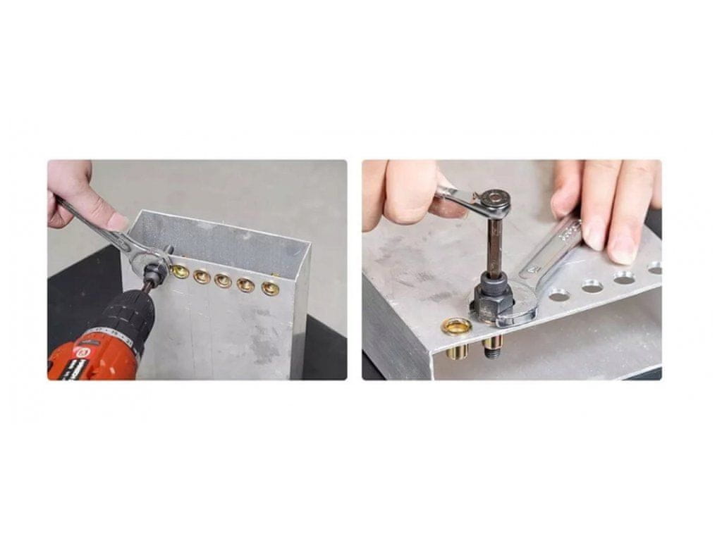 4. Z imbus ključem (ročno ali z izvijačem) privijte glavo zakovice tako, da se kovičasta matica pritisne v luknjo na spoju.
