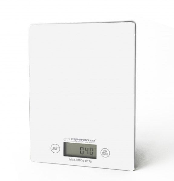 Esperanza Kuhinjska tehtnica Esperanza EKS002W, elektronska, bela, visoka natančnost, do 5 kg, LCD zaslon, potrebna baterija CR2032
