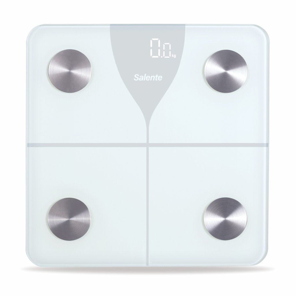 Salente SlimFit, osebna diagnostična tehtnica za fitnes, Bluetooth, bela Celoten opis