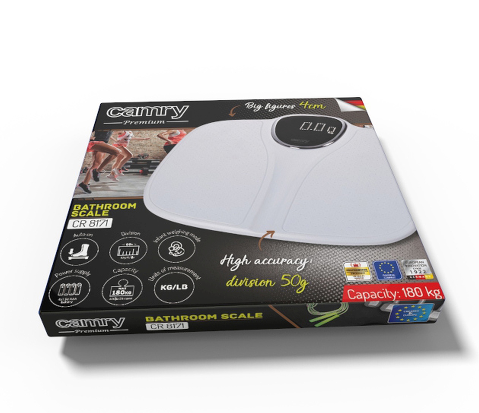 Natančna elektronska kopalniška tehtnica z največjo nosilnostjo 180 kg.