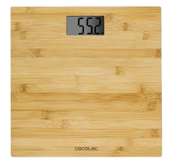 Digitalna osebna tehtnica Cecotec Surface Precision 9300 Healthy vas bo navdušila s ploščo v velikosti 30 × 30 cm, ki je izdelana iz bambusovega lesa z ekološkim certifikatom. Opremljena je s tehnologijo FourPrecision, ki s pomočjo štirih senzorjev zagotavlja natančno merjenje telesne mase. Nosilnost tehtnice znaša 180 kg. Meri z natančnostjo 100 g in meritve izpisuje na preglednem LCD zaslonu v kg ali lbs.