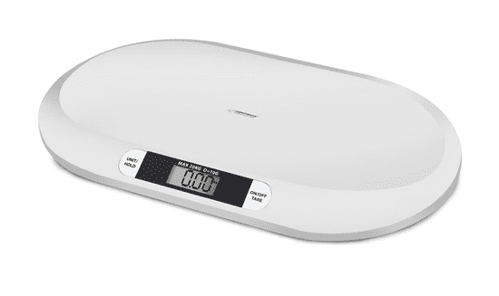 Sodobna elektronska tehtnica za dojenčke, ki vam omogoča nadzorovanje teže vašega dojenčka. Redno preverjanje otrokove teže in rasti pomaga spremljati njegov/njen pravilen razvoj. Dojenček lahko tehta do 20 kg. Velik zaslon s tekočimi kristali omogoča preprosto branje rezultatov tehtanja. Tehtnica je opremljena tudi s funkcijama TARE in HOLD za enostavno tehtanje, ko se vaš otrok premika. Ergonomska oblika zagotavlja udobje in varnost vašega otroka pri tehtanju. S to tehtnico za dojenčke Esperanza dobite najboljši način za spremljanje razvoja in zdravstvenega stanja dojenčka!