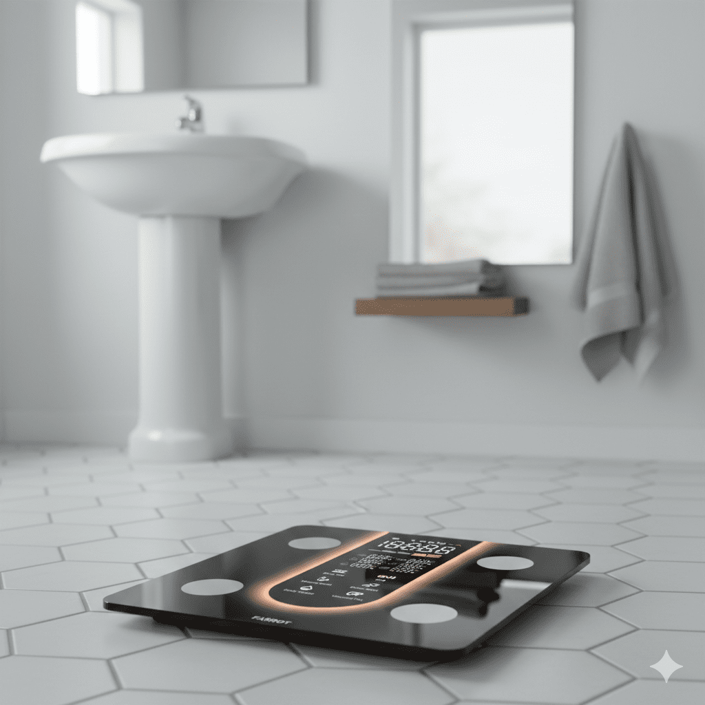 FARROT pametna tehtnica ponuja napredno analizo telesne sestave z 21 parametri, stabilno Bluetooth povezavo in podrobno mobilno aplikacijo za dolgoročno spremljanje napredka.