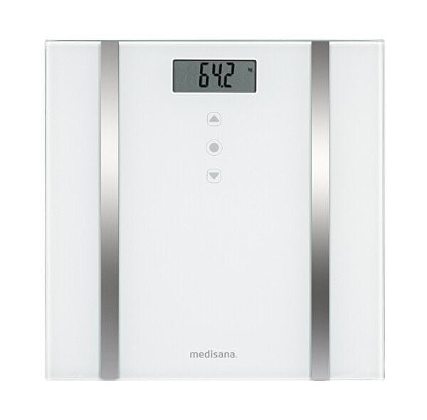 • meri telesno težo, maščobo, vodo, mišično in kostno maso, izračunava ITM in BMR,