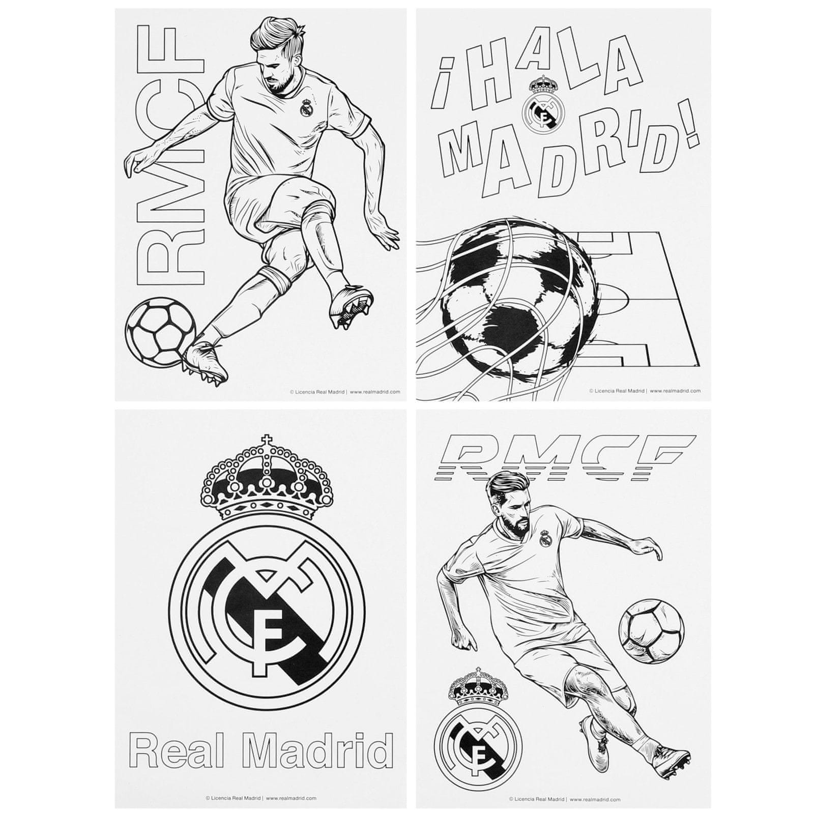 Vsaka pobarvanka prikazuje prizore, povezane s klubom, grbom in igralci Reala Madrida, zato bo risanje še bolj zanimivo.