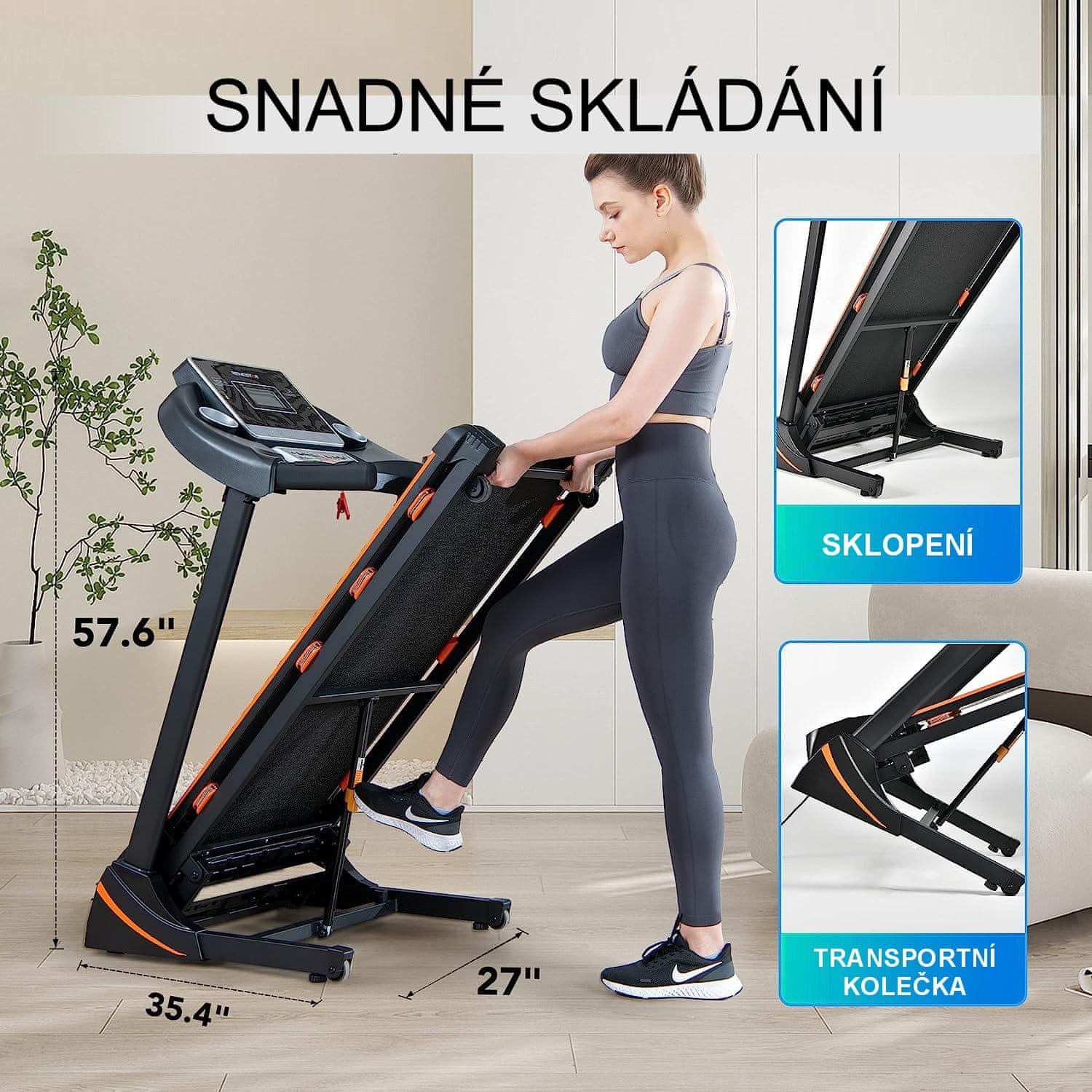In če ne vadite, trenažer ne bo zasedel skoraj nobenega dodatnega prostora v vašem domu. Zaradi zložljive zasnove z navpičnim shranjevanjem in enostavnim prestavljanjem z vgrajenimi kolesi lahko tekaško stezo v hipu pospravite. Poleg tega kakovost celotne konstrukcije potrjuje podaljšana garancija za okvir (10 let) ter motor in tekalno površino (3 leta).