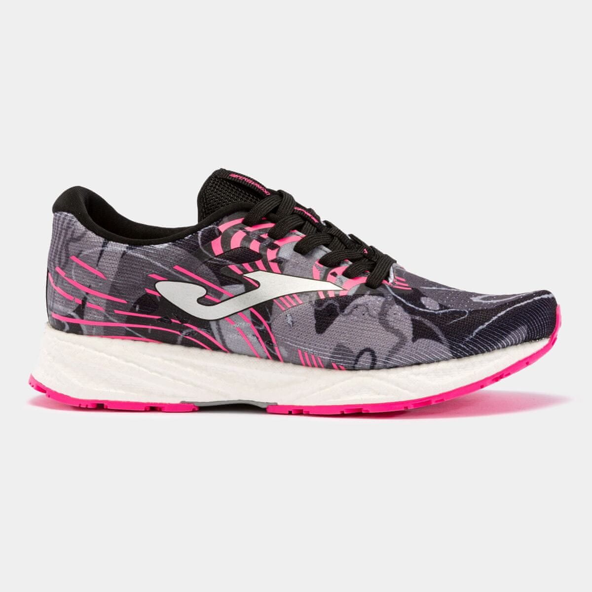 Ženski tekaški copati Joma R.Viper Lady 2301 so idealni za trening, saj zagotavljajo dobro blaženje. Oblikovani so za tekače s srednjo težo in nevtralnim tekom.Ta model z avantgardnim dizajnom ima odlično blaženje in stabilnost zaradi revolucionarne tehnologije STABILIS na zadnji strani. Zgornji del je izdelan iz lahke, prožne in zračne tkanine s tehnologijo VTS na območjih največjega potenja za ustrezno prezračevanje znoja. Tekstil je zaščiten s koščki sintetičnega materiala, ki so brezšivno vstavljeni z uporabo tehnologije FLEXSHIELD. Njegov namen je ohranjati lahkotnost, ščititi in podpirati zgornji del ter zagotavljati stabilnost. Vmesni podplat je izdelan iz enega kosa novega in revolucionarnega materiala REACTIVE BALL, ki absorbira udarce. Tako kot njegovi nedavni predhodniki ima v zadnjem delu vložek STABILIS, ki preprečuje zvijanje čevlja in nepravilno zavijanje na tem območju. Podplat iz gume DURABILITY zagotavlja večjo odpornost proti obrabi.