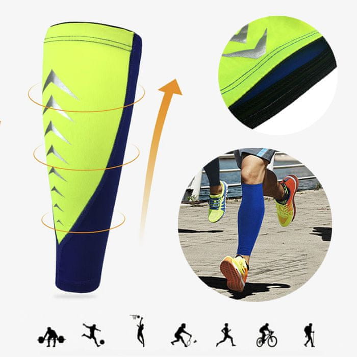 Kompresijske rokave za noge se lahko uporablja med tekom, lahko zmanjša krče v mečih, zmanjša utrujenost, zagotovi stabilizacijo mišic, zmanjša mikro raztrganine in prepreči poškodbe. Izboljša cirkulacijo in hitrejše okrevanje mišic, saj kompresija v vsakem paru rokavov za noge pomaga izboljšati venski povratek, poveča pretok krvi in cirkulacijo. To pa vodi do hitrejšega časa okrevanja mišic.