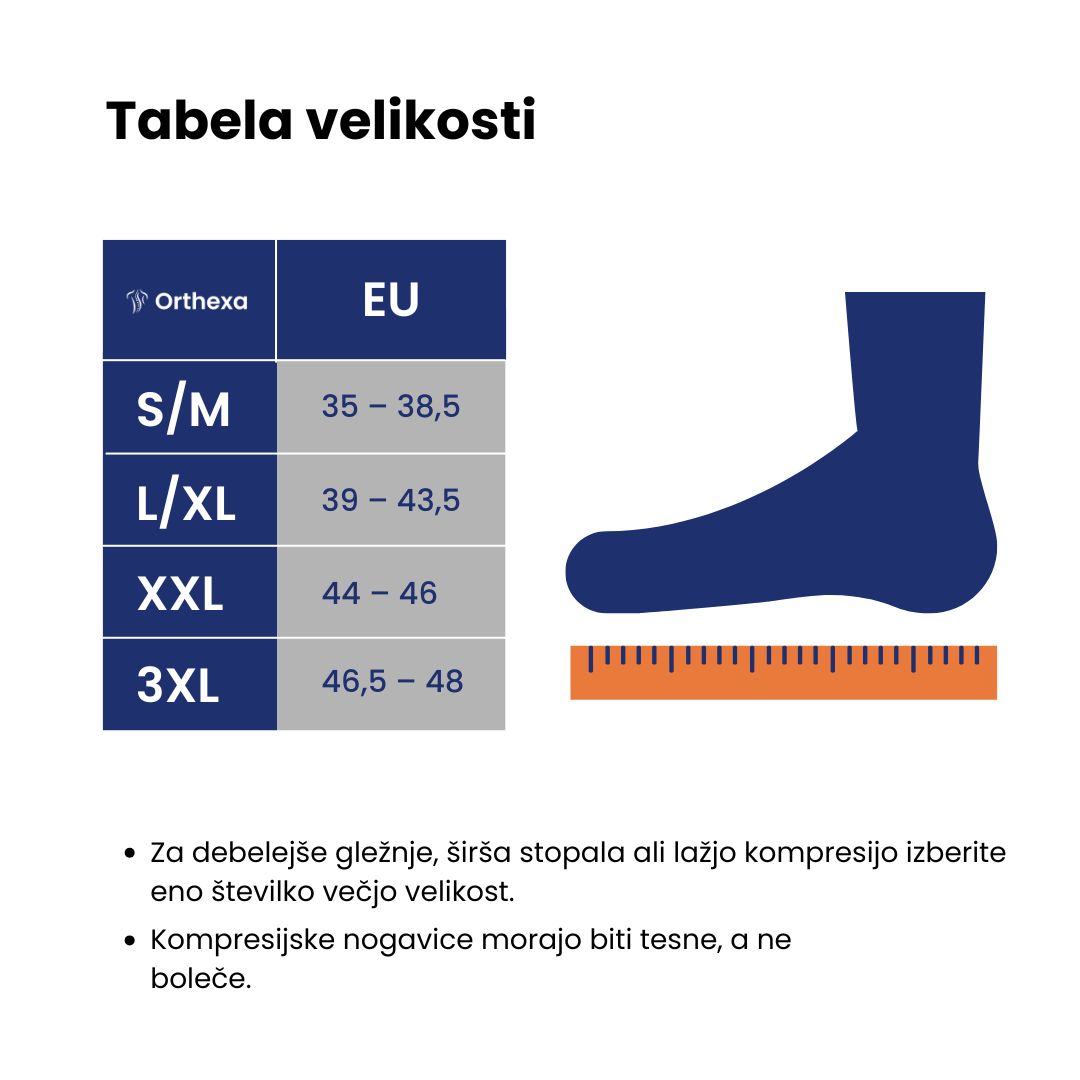 Izdelane so iz lahke, elastične in zračne tkanine, ki ohranja stopala suha in udobna. Prava medicinska kompresija 20–30 mmHg zagotavlja optimalno oporo in učinkovit pritisk za lajšanje bolečin ter hitrejše okrevanje.