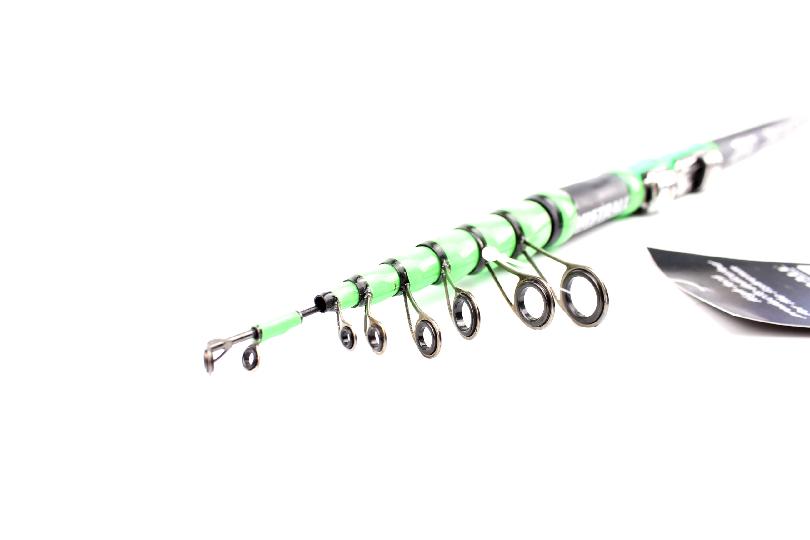 Palice Mistrall ZINO Tele Float so na voljo v treh dolžinah: 3,60 / 4,00 / 4,50 m in imajo univerzalno metanje od 10 do 40 g, zaradi česar so primerne tako za jezera kot za reke.
