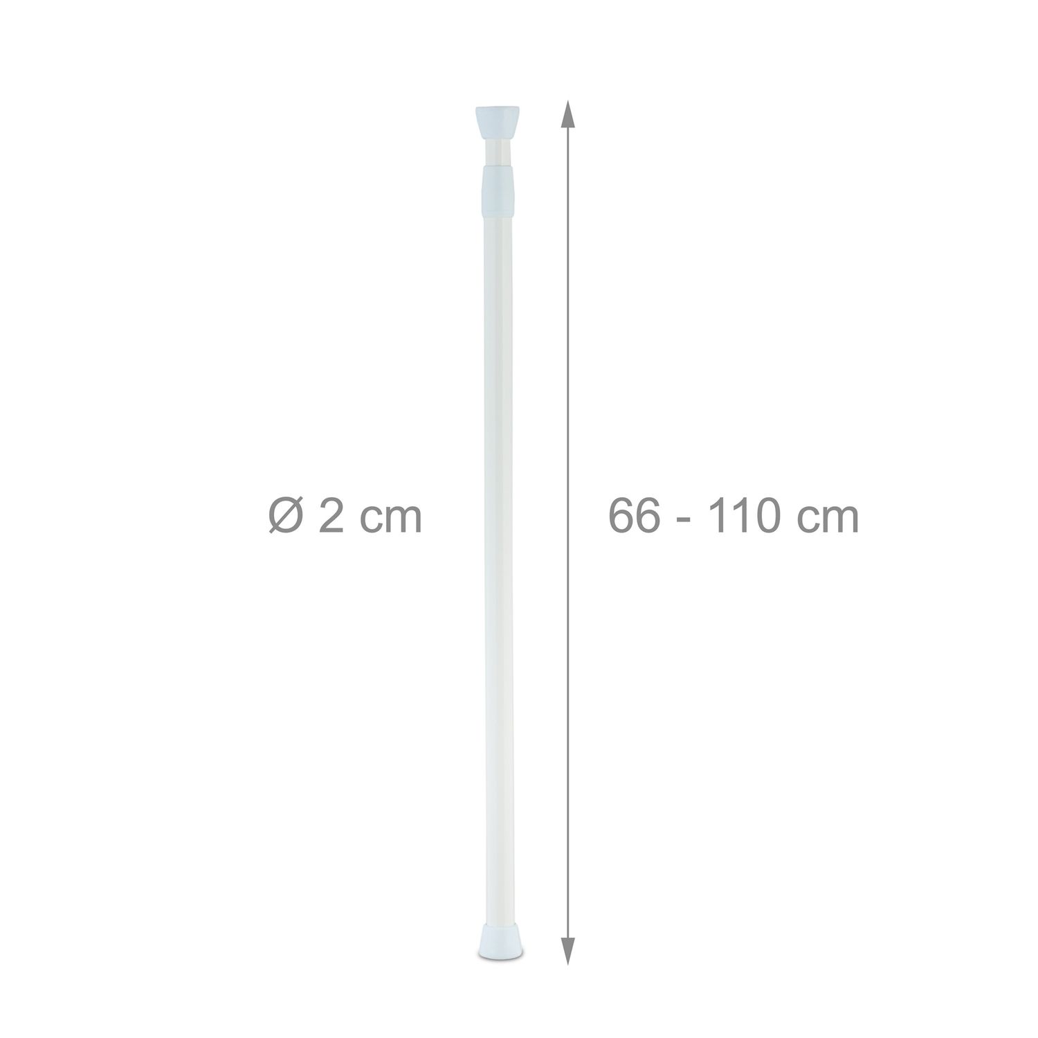 Bela napenjalna palica ponuja vsestransko funkcionalnost za zavese, zavese za prho in drugo ter omogoča enostavno namestitev brez vrtanja. Dolžino enostavno prilagodite svojemu prostoru.