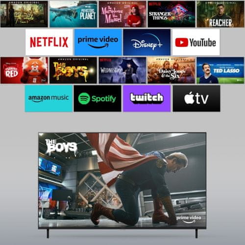 • Aplikacije in storitve: HBO MAX / Disney+ / Netflix / Sledovani.TV / Youtube / Amazon Prime / Airplay, Spotify / Twitch in druge (naročnina ne je vključena – lahko jo kupite ločeno pri zadevni storitvi)