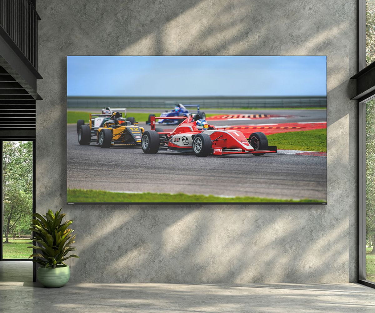 Doživite tekoče slike in visoko odzivnost v bogati kakovosti 4K UHD s Thomson Google TV 100" QLED Pro.