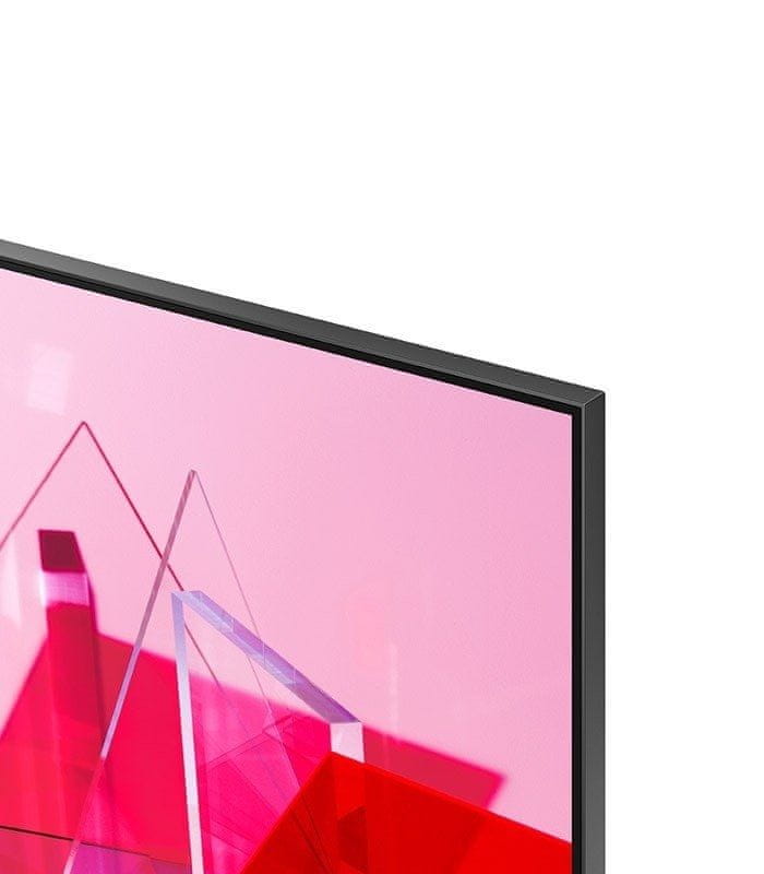 Televizor se ponaša s privlačno obliko, ki zagotavlja, da bo vaša pozornost vedno usmerjena na sliko. Navdušil pa vas bo tudi z elegantnim minimalističnim slogom s skoraj nevidnim robom za vrhunsko kinematografsko izkušnjo.