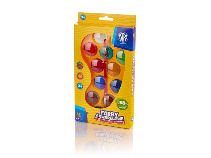 Astra ASTRA Vodne barve na paleti s čopičem premera 30 mm, 12 barv, 302117001