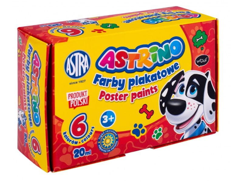Barve so primerne za papir in druge umetniške površine, zaradi Astrinove zabavne embalaže pa bodo všeč tudi najmlajšim umetnikom.