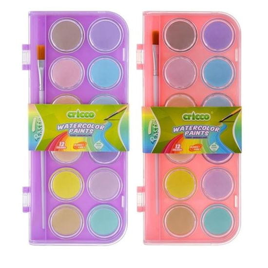 CRICCO Vodne barve, 12 barv + čopič, pastel