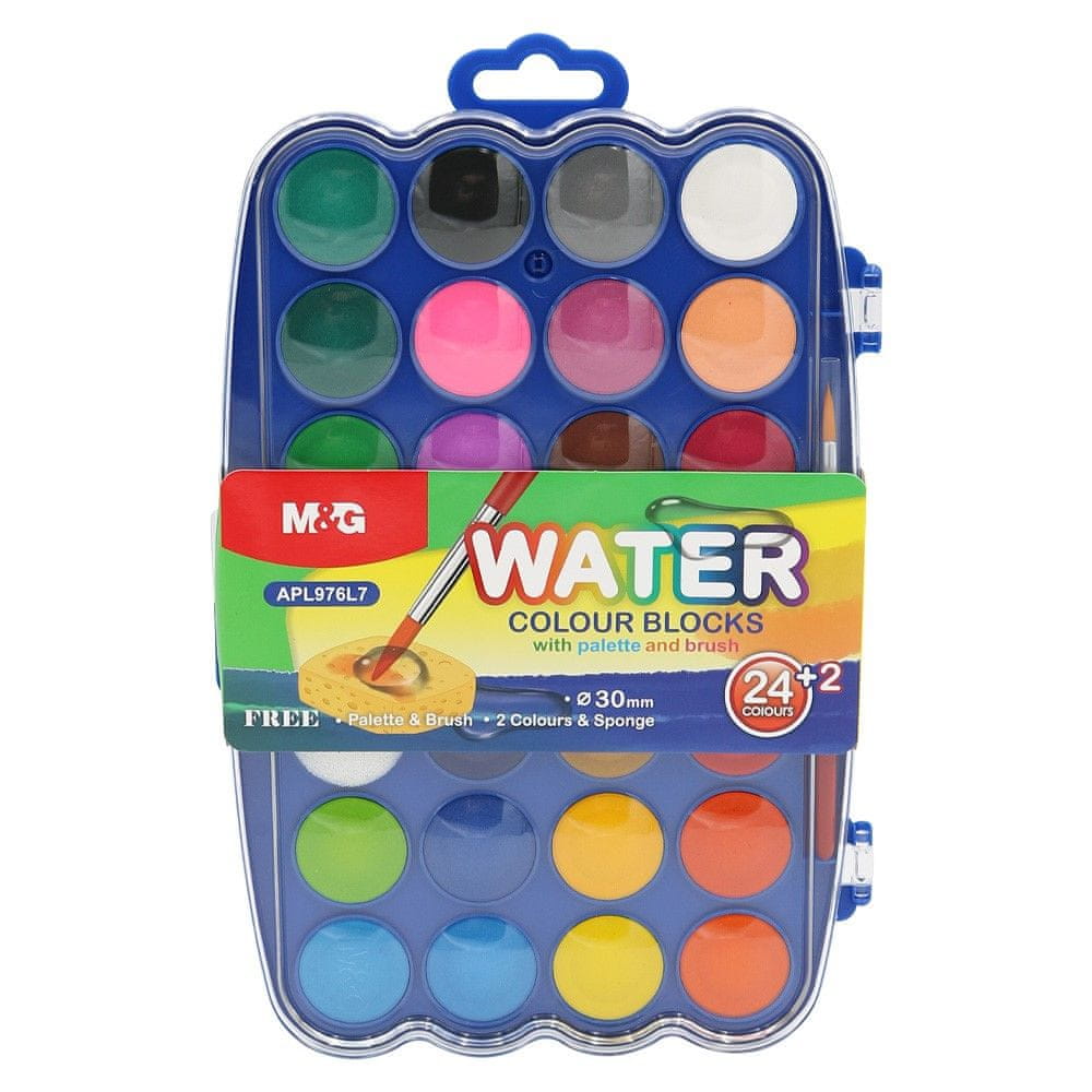 M&G Vodene barve 26 barv (23 mm) + paleta in čopič