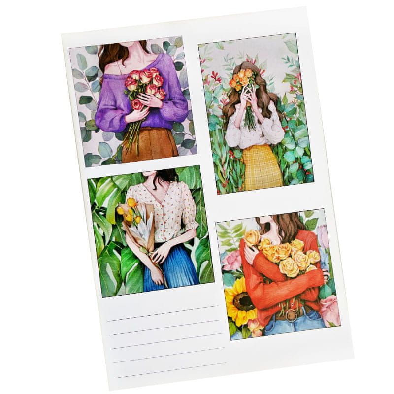shumee Akvarelna slika - Dekle z rožami - 4 elementi