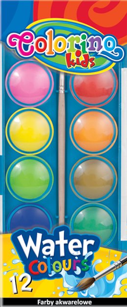 COLORINO šolske AKVARELNE BARVE na vodni osnovi tableta 28 mm 12 barv + čopič
