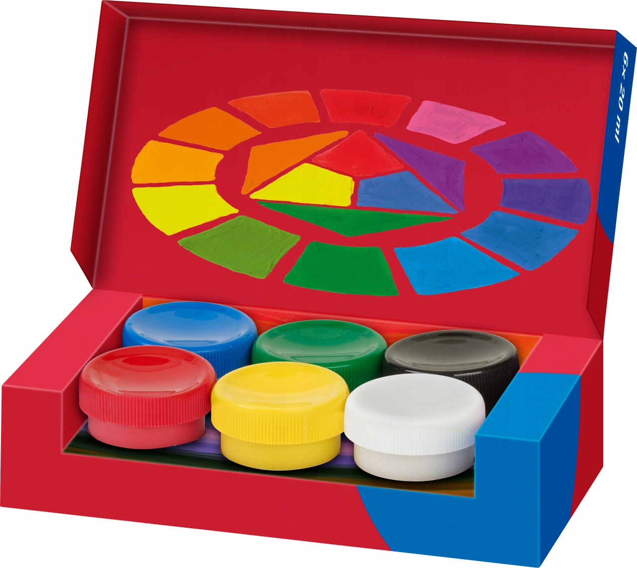 Visokokakovostne barve za plakate. Visoko pigmentirane, neprozorne, intenzivne barve. Za skoraj vse površine. Nepredušno zaprte posodice po 20 ml z navojem in pokrovčki v isti barvi kot barva. Idealne za dom in šolo. Kartonska embalaža.