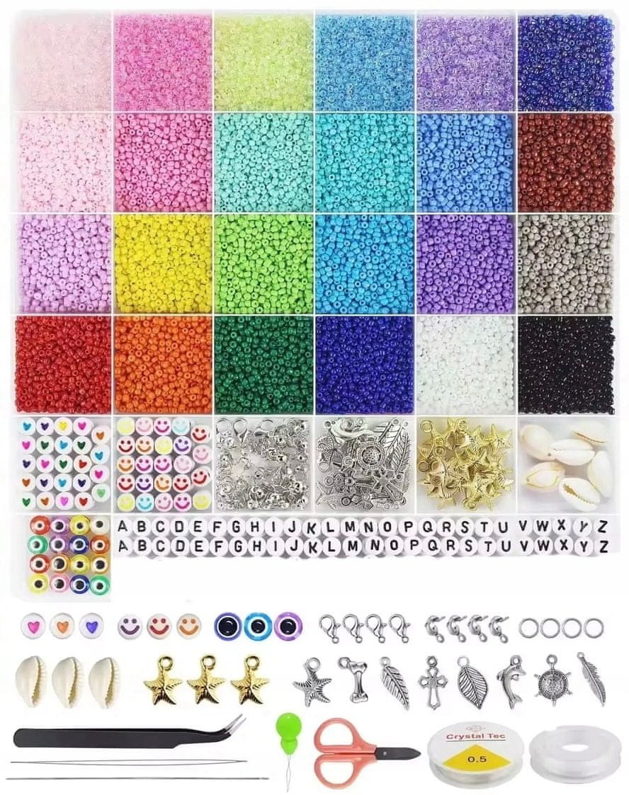 MEGA XXXL SET PERLIC ZA IZDELAVO ZAPESTNIC PISANE ČRKE 17000 17000 KOSOV – SET PERLIC ZA IZDELAVO ZAPESTNIC – ČRK Iščete idejo za unikatno in kreativno darilo? Ta komplet perlic je popolna izbira za otroka, ki rad ustvarja svoje osebne okraske! Zakaj je vredno? Razvija domišljijo in ročne spretnosti – otroci lahko oblikujejo unikatne zapestnice s črkami, ustvarjajo svoja imena, napise ali vzorce. Zagotavlja ure ustvarjalne zabave – izdelovanje nakita ni samo zabavno, ampak tudi odličen način za učenje potrpežljivosti in koncentracije. Personalizacija – zmožnost ustvarjanja edinstvenih modelov, ki odražajo individualni slog in ustvarjalnost. ➡️ Ne odlašaj! Naročite zdaj in svojemu otroku privoščite veselje do ustvarjanja nakita, ki bo hkrati lep okras in čudovit spomin na ustvarjalne trenutke. NA TISOČE PERLIC – NESKONČNE MOŽNOSTI Komplet ponuja ogromno perlic v različnih barvah, oblikah in velikostih, ki vam bodo omogočile ustvarjanje edinstvenih dizajnov nakita. Kaj boste našli notri? Pisane perle – v čudovitih odtenkih, popolne za vsak projekt. Srčki, zvezdice in črke – omogočajo popolno personalizacijo zapestnic, zaradi česar je vsak ustvarjen okras unikaten. ➡️ Oblikujte, prilagodite, zabavajte se! Ustvarite zapestnice z imeni, najljubšimi besedami ali navdihujočimi slogani – edina omejitev je vaša domišljija! KLJUČNE PREDNOSTI KOMPLETA ZA IZDELAVO NAKITA UČENJE NOVIH VEŠČIN Izdelovanje nakita razvija otrokove ročne spretnosti, jih uči natančnosti in rokodelskih tehnik, kot je nizanje perlic ali zavezovanje vozlov. To je odličen način za izboljšanje finih motoričnih sposobnosti. ? KREPITEV KONCENTRACIJE IN SAMOSTOJNOSTI Pouk s kroglicami uči potrpežljivosti in osredotočenosti, pomaga otrokom razviti sposobnost koncentracije in samostojnega reševanja ustvarjalnih nalog. ? IZOBRAŽEVANJE SKOZI IGRO Otroci med igro spoznavajo oblike, barve in lahko raziskujejo zgodovino nakita. Je kombinacija znanosti in kreativne zabave, ki navdihuje in uči. ? RAZVIJANJE SOCIALNIH VEŠČIN Ustvarjanje nakita v skupini pomaga graditi odnose. Otroci se učijo sodelovanja, komunikacije in sprejemanja odločitev, hkrati pa krepijo vezi z vrstniki. ➡️ Izdelovanje nakita ni le hobi – je celovit razvoj skozi zabavo in ustvarjalnost! ➡️ VSEBINO SETA NAMESTITE V ELEGANTNI PLASTIČNI ORGANIZATOR