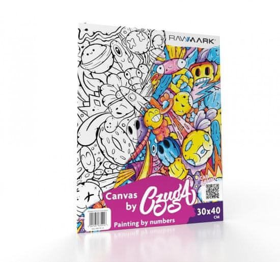 Komplet vsebuje napeto platno na lesenem okvirju s potiskom v slogu čačkanja. Obliko je ustvaril znani vplivnež Czuga. Združljivo z 80-delnim kompletom markerjev Rawmark PurePro, ki ga podpira oglaševalska kampanja. Skenirajte in slikajte po številki!