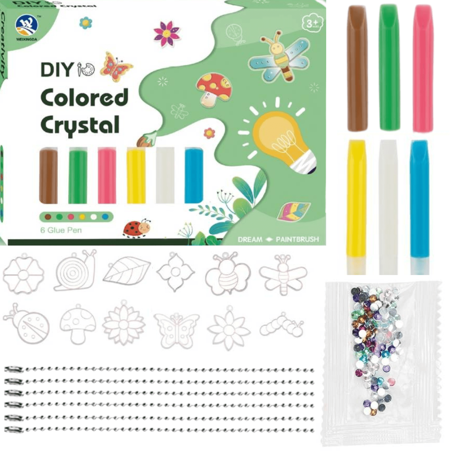 vključuje vse potrebne elemente za ustvarjanje čudovitih obešalnikov ki jih lahko uporabite za okrasitev nahrbtnika, torbice ali pritrditev na ključe! Komplet vsebuje šablone z različnimi motivi. Ta komplet šablon za ustvarjanje je odličen način za razvoj otrokove ustvarjalnosti in umetniških spretnosti. Vključuje vse, kar potrebujete za ustvarjanje čudovitih in barvitih umetniških del. 4 KORAKI ZA IZDELAVO ČUDOVITEGA OBESKA: