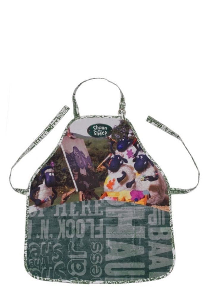 • Predpasnik z motivom ovce Shaun, primeren za likovni pouk – ščiti oblačila pred umazanijo Material: 100 % poliester Dimenzije: 45 × 52 cm