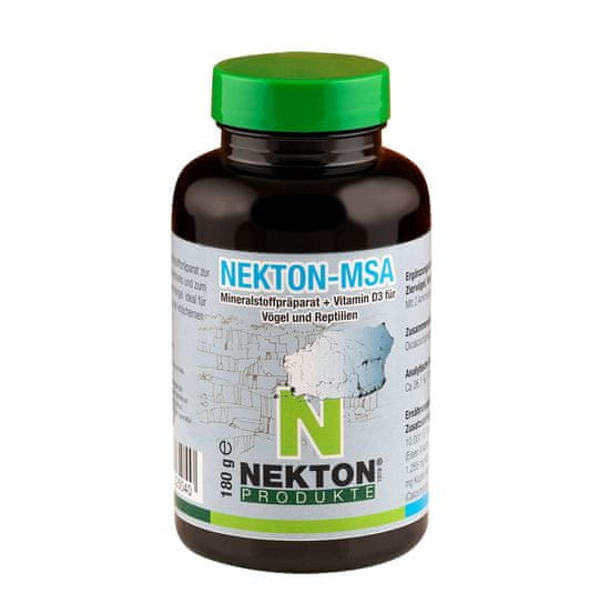 Nectone MSA je že dokazal svojo uporabnost, zlasti pri vzreji mladičev, in je skoraj nepogrešljiv za vse pasme različnih vrst plazilcev. Nekton MSA je eden od najbolj razširjenih mineralnih dodatkov po vsej Evropi in je še posebej priljubljen med nemškimi in češkimi rejci.