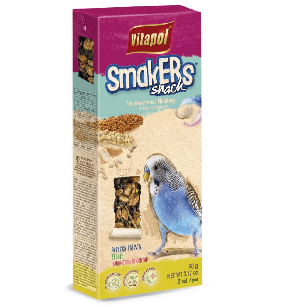 Smakers, ki zaradi prisotnosti najbolje izbranih oljnih semen v svoji sestavi podpira telo v obdobju levitve papig, ko njihovo telo zahteva visokoenergijsko prehrano. Vpliva tudi na sijaj in dobro stanje ptičjega perja