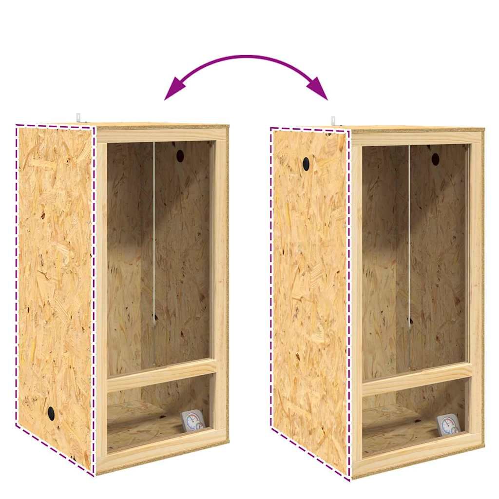 Ta čudovit kvadratni terarij ponuja rustikalen izgled s svojo naravno in trdo strukturo. Narejen iz kakovostnega OSB in stekla, obljublja dolgotrajnost in stil, kar je super za dvoživke, plazilce ali glodalce. Njegova zasnova omogoča raziskovanje narave in ponavlja zunanje okolje za različne hišne ljubljenčke. Ima drsna vrata za enostaven dostop in opazovanje, kar se super ujema z notranjimi prostori ter krepi vez z naravo.