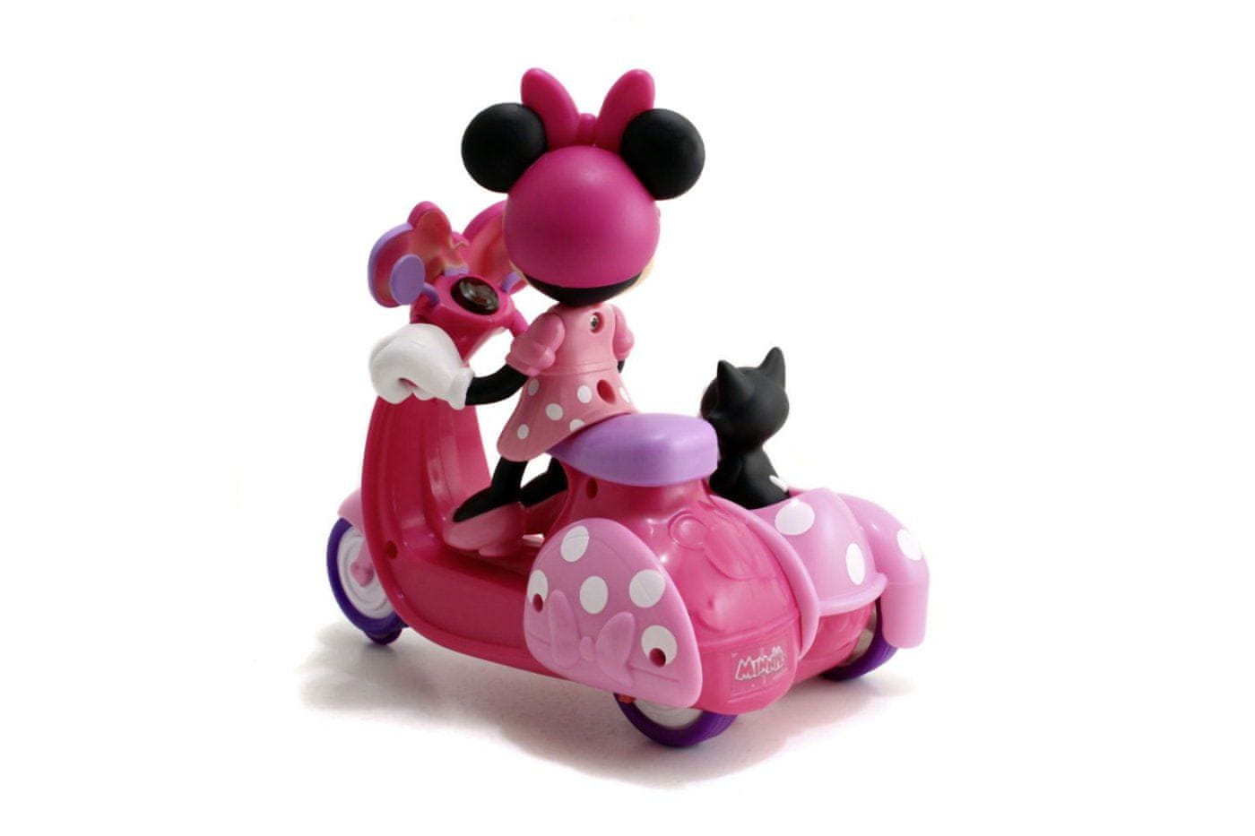 IRC skuter z Minnie in mačko, 1 kanal, naprej, nazaj z obračanjem. Velikost 19 cm. Baterije: voznik 2× 1,5 V R03, skuter 3× 1,5 V R6, baterije niso vključene.